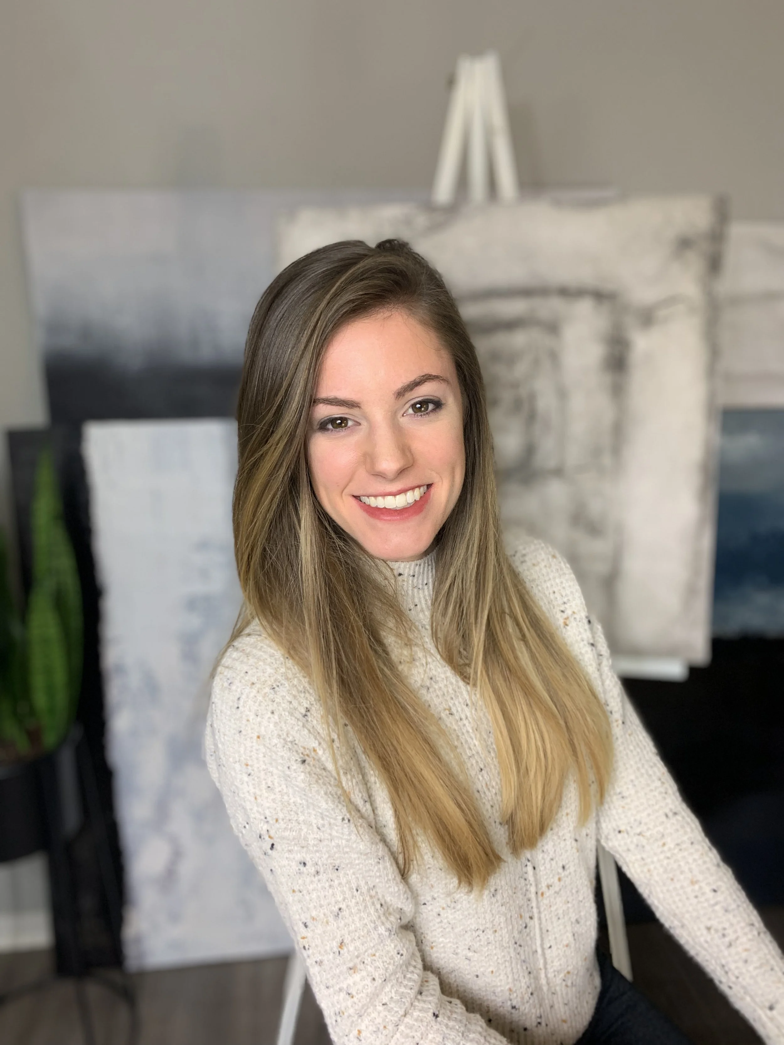 “I have always enjoyed the arts: from painting and drawing, to photography and design- ALL of it has intrigued me from a young age. While painting has always been a hobby I enjoyed as I found the time to create, it wasn’t until the 2020 COVID-19 pandemic that I found myself diving deep into this God given ability more than I ever had before. Painting was an outlet in a time I felt, and was, alone within my home. During this season I found so much joy, encouragement, and affirmation of what I was creating through textured art. In 2022 I left my current job to invest in painting becoming my full time career. The day after my last day of work at my past job I found out I was expecting a baby, and the dream of being a Mom was coming into reality. So now I am a full time mom and part-time artist. It is definitely busy and a balance I am still learning to grasp but both titles are a dream come true and I wouldn’t change a thing. We have had some amazing help with childcare as some weeks are busier than others within this career as an artist. I could not be doing this without the love, support, and help of my husband and family members.“